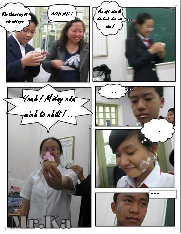 Tiếp : Đáng lẽ là phải viết tiếp từ hôm qua 7/11 nhận giải về nhưng mà bận quá không lên viết ddc nay viết tiếp : Chán : Nói thẳng luôn nhé được mỗi giải BỘ PHIM SÁNG TẠO NHẤT ( nhưng mà nói chung bộ phim sáng tạo nhất cũng coi như là giải nhì rôi , sáng tạo nhất tức là đặc biệt nhất , tốn nhiều chất xám nhất mà ) :) . Năm nay giải nhất là Marrie Curie , bọn nó sướng thật ( mà mình cũng phải công nhận là phim của nó hay nhất thật ) nhìn bọn nó cầm cái vé máy bay đi Malaysia mì thấy tiếc quá . Phim của Lomo được giải kĩ thuật bọn nó cũng phải công nhận là kĩ thuật và góc quay khá tốt , Còn của Nguyễn Siêu thì khỏi phải nói , có thể nói là quá bôi bác , được cho là cái giả phỏng vấn hay nhất , nhưng thực ra cái gải phỏng vấn cũng phải thuộc về trường mình luôn nhưng chẳng lẽ không cho nó cái giải nào nên chắc nó được cho là cái giải phỏng vấn tốt nhất . Gải thưởng hì mỗi thành viên ddc một cái đèn , giảo viên phụ trách thì ddc cài bàn là , va cả nhóm ddc cái tủ lạnh và giấy xác nhận . Cái vấn đề cũng chính là ở đây này ... Giấy khen thì cho trg , còn tủ lạnh thì ko ... Trg nghe đâu đang đinh chiếm :( , cương quyết không cho , phải đấu tranh , công sức mồ hôi nước mắt của mình , trường đã không quan tâm phản đối không giúp ích gì thì sao lại ddc hưởng , bây giờ phải bán và xung quỹ ( ko thể cho trg được ! ) .Dù sao hôm qua cũng lời ddc bữa ăn buffet ở Nikko . Quay phim quen được thêm bạn mới , hiểu nhau nhìu hơn :P . Mai là sinh nhật chị Yến rồi , Chúc mừng sinh nhật Yến nhé !! Không biết năm sau có ddc tham gia KWN nữa không nhỉ ( chắc là không , chuyển trg rồi , và không còn là kid nữa ) :)